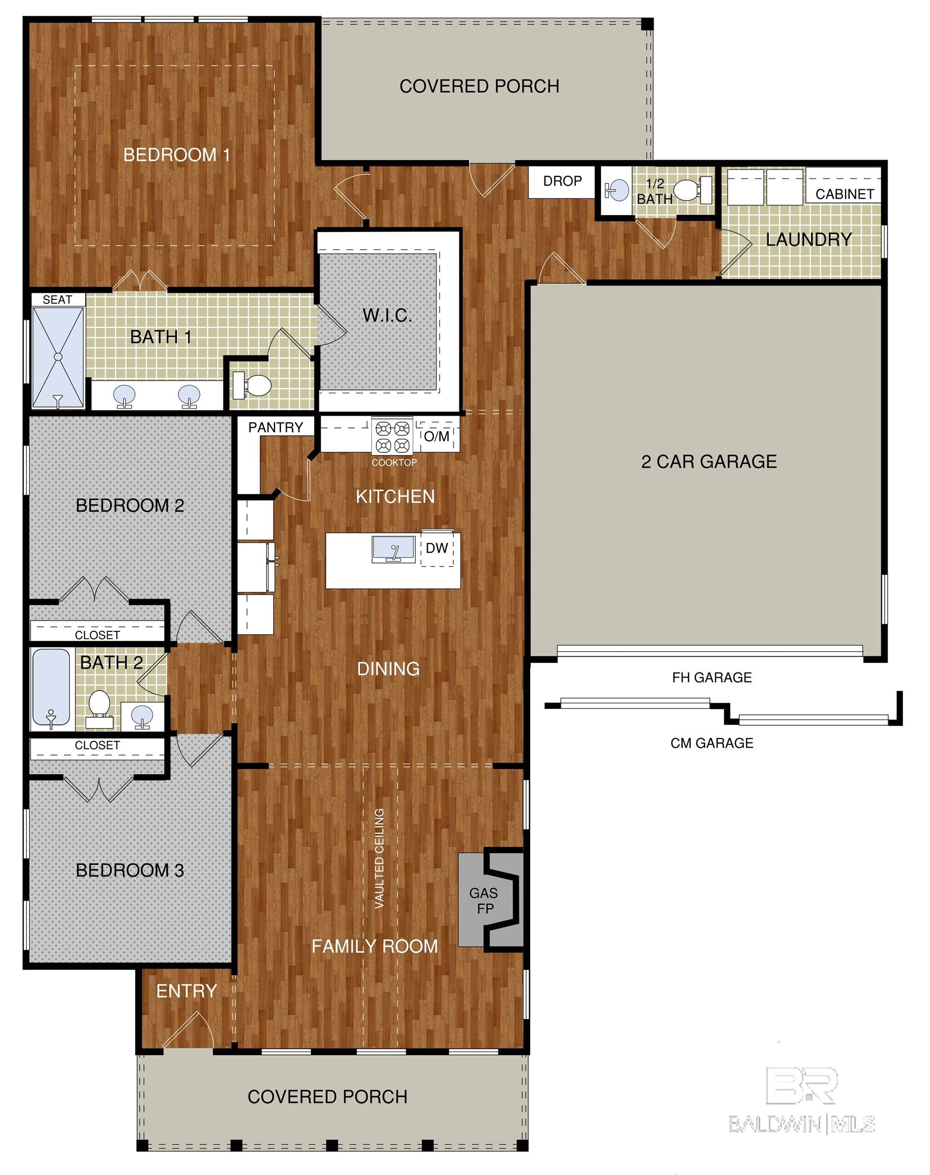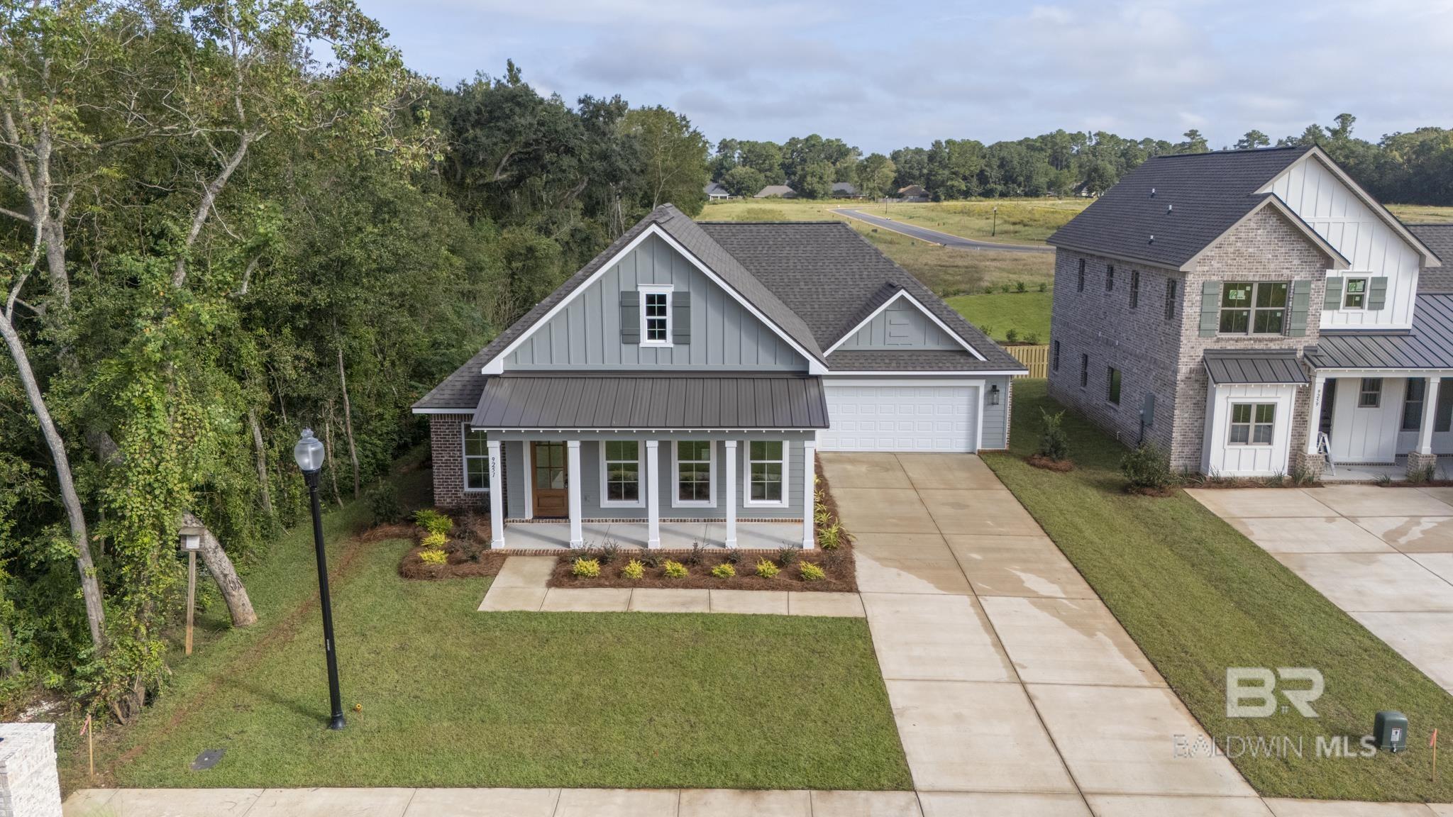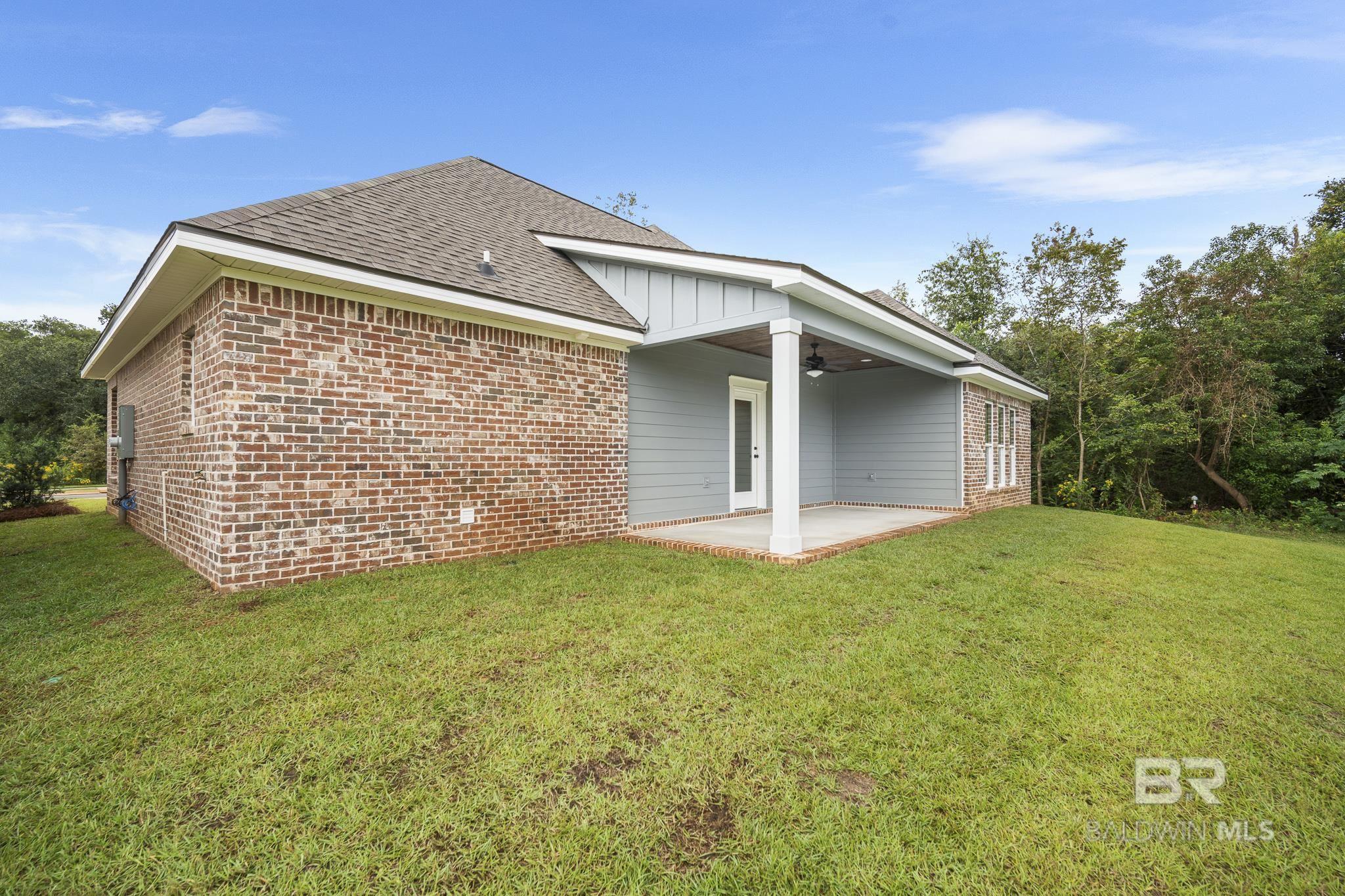 Welcome to the Poplar plan, a thoughtfully designed single-story home from Tower Homes that blends modern comfort with everyday functionality. This 3-bedroom, 2.5-bath layout features an open-concept living space anchored by a vaulted ceiling in the spacious family room and a cozy gas fireplace, creating a warm and inviting focal point. The adjacent dining area seamlessly flows into a chef-style kitchen, featuring a large island, quartz countertops, a walk-in pantry, and a premium appliance package that includes a gas cooktop and a built-in microwave/oven. The private primary suite offers a quiet retreat with backyard views, an oversized walk-in closet, and a luxurious ensuite bath featuring dual vanities, a walk-in shower with bench seating, and a private water closet. Bedrooms 2 and 3 are tucked toward the front of the home, sharing a full bath with double sinks and ample closet space. Convenience is key with a front-entry 2-car garage, drop zone, and large laundry room. A separate half bath near the garage entry is ideal for guests. Enjoy outdoor living year-round on both the front and rear covered porches, perfect for relaxing or entertaining. Located on Lot 1, Patch Place is a 64-lot subdivision located just off CR 13 at the end of Parker Ln. It is minutes from I-10 and is close to schools, shopping, parks, and more. Gold Fortified, the home includes a 1-year builder warranty, a 10-year PWSC structural warranty, and a 1-year. Termite bond with Formosan coverage. One or more principals of the selling entity are licensed real estate agents and or Brokers in AL. Buyer to verify all information during due diligence.